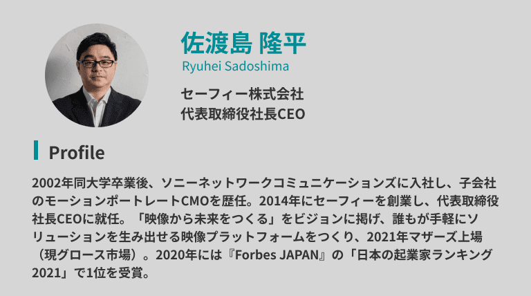 リアルタイム性の高い情報によって、人が進化し、業界が進化し、世界が進化する。進化の中で我々が提供するものが役に立っていくことを、セーフィーでは目指したいと思います。