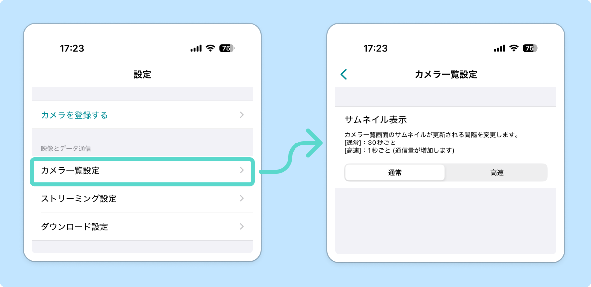 従来のカメラ一覧にあった「リアルタイム更新」(サムネイルの更新頻度を上げる)設定は、
